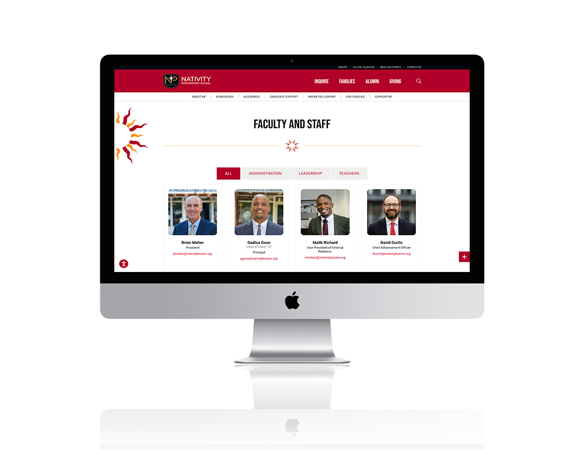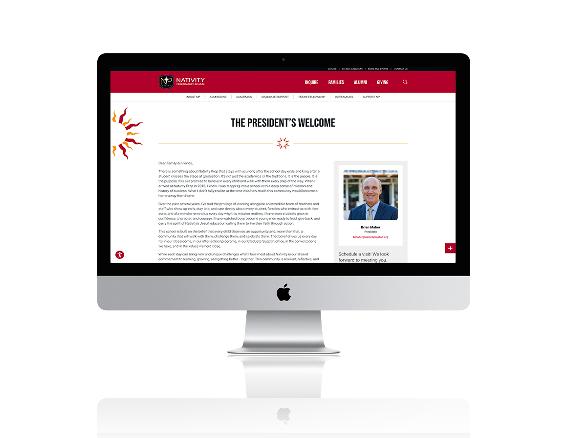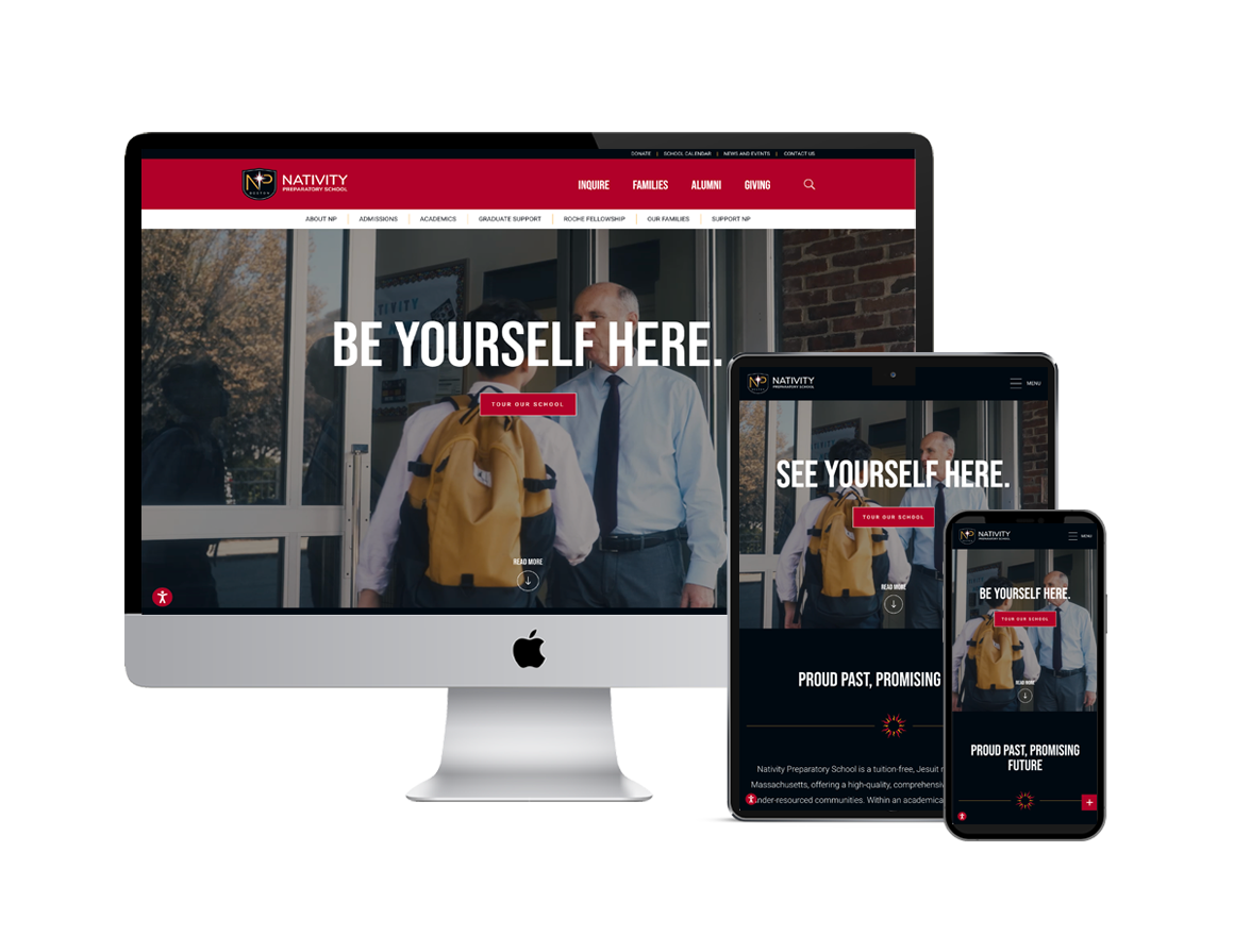 For more than 15 years we’ve been proud creative partners with Nativity Preparatory School, a private Jesuit middle school in Jamaica Plain, MA. After completing a new logo and identity system, our studio designed and developed a new, custom school website which included a sitemap makeover, improved content strategy, a well-branded user interface design and template system, wonderful photography and video, and a client-friendly CMS.
